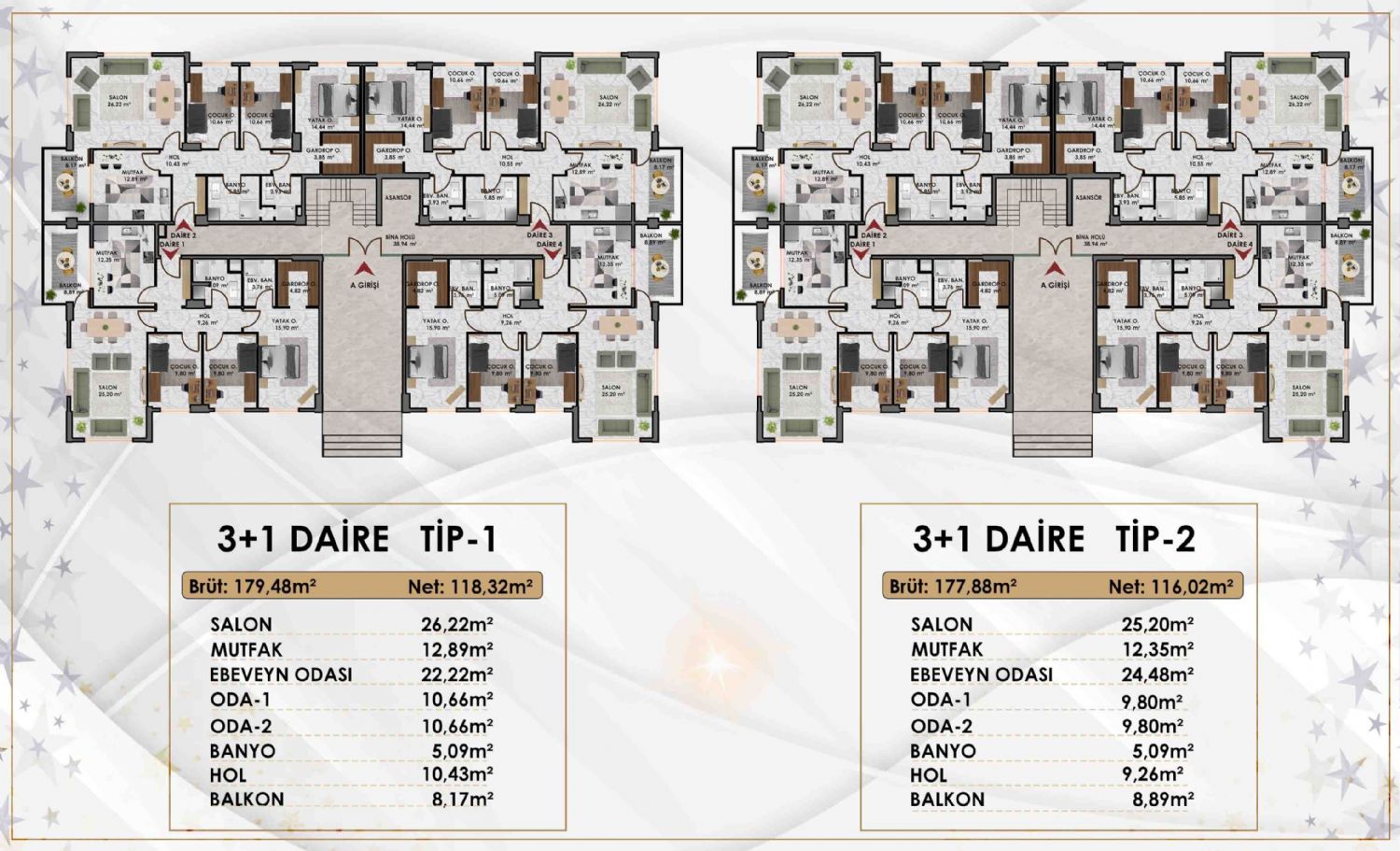 * Zemin Estetiği: Tüm daire zeminlerinde modern 60x120 ölçülerinde yüksek kaliteli seramik şıklığı.
